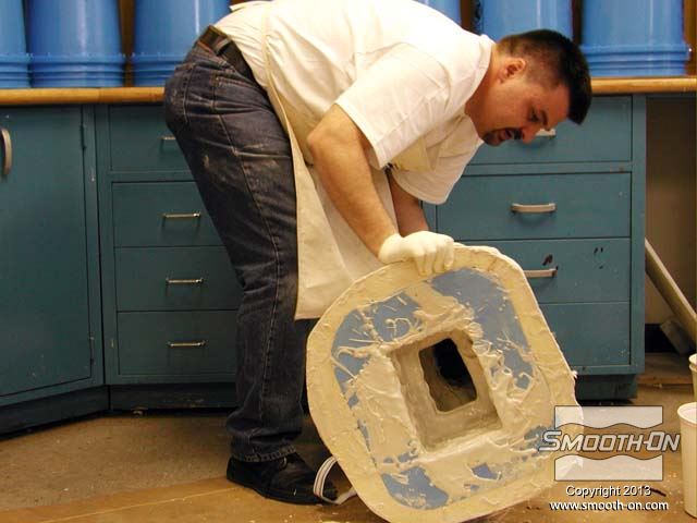 מחלצים את תבנית הפוליאוריטן הגמיש בזהירות מתחילים בחלק האחורי.