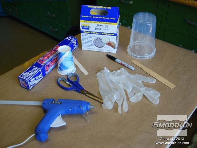 חותכים כוס פלסטיק גדולה לגודל מתאים. הכוס תשמש כמסגרת לתבנית הסיליקון ליציקה Oomoo® 30.