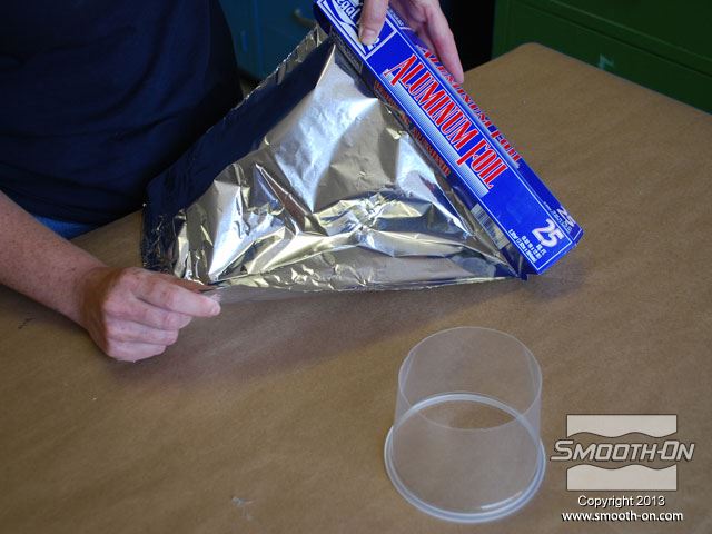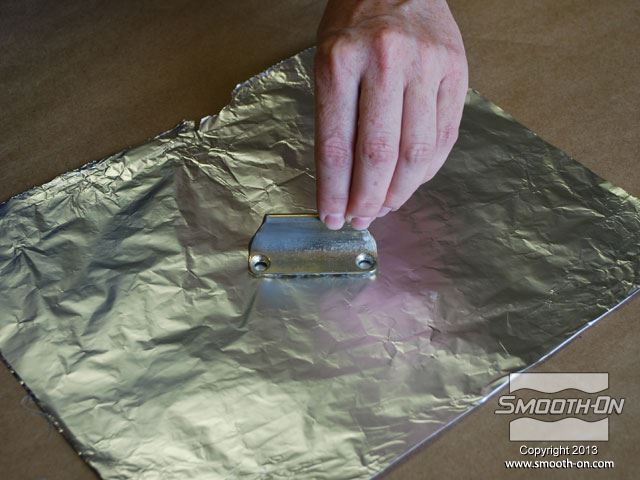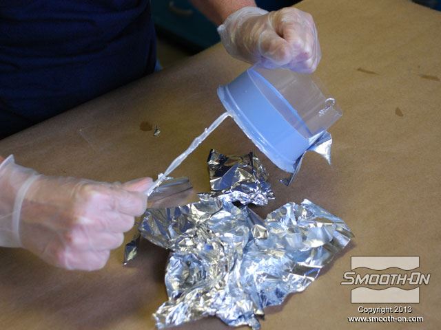 לאחר שהסיליקון ליציקה Oomoo® 30 התמצק, מסירים את נייר האלומיניום מהתבנית