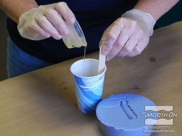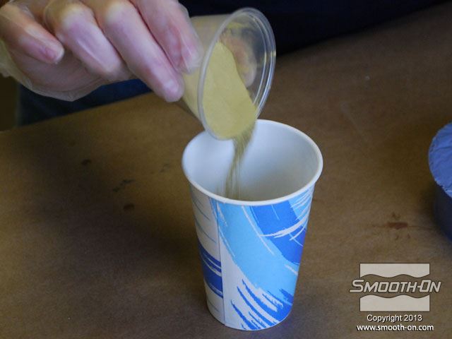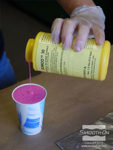 מודדים את הכמות הרצוייה של בסיס סיליקון ליציקה Oomoo® 30.