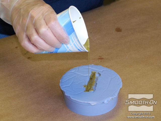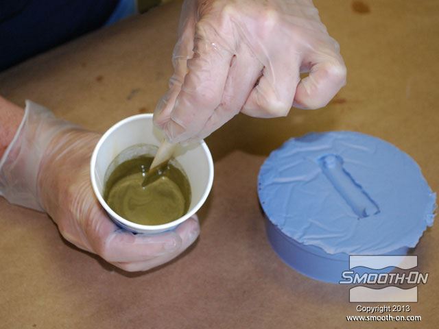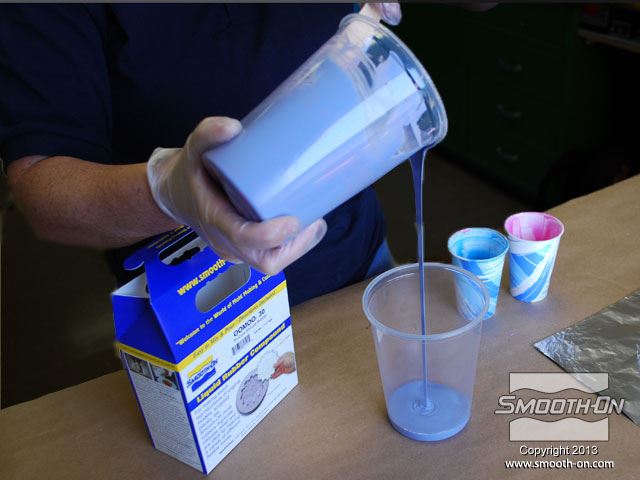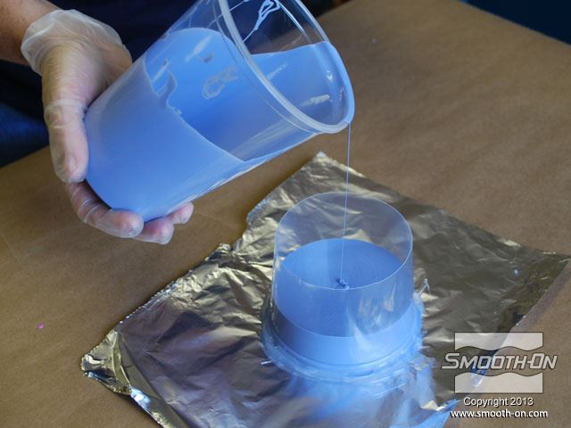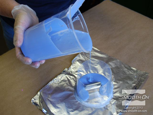 יוצקים לאט את הסיליקון Oomoo® 30 למיכל, מסביב למודל.