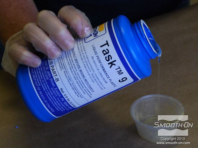 יוצקים לאט את הפוליאוריתן Task® 9 לחלל התבנית עד שהיא מלאה לגמרי.