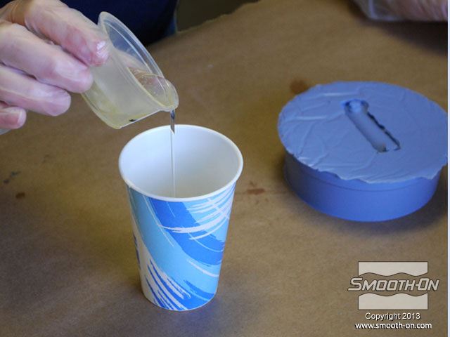 מודדים כמות שווה לפי נפח של מקשה סיליקון ליציקה Oomoo® 30.