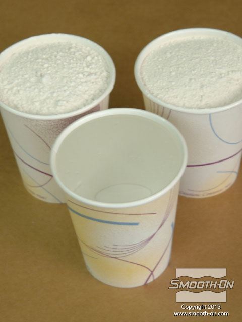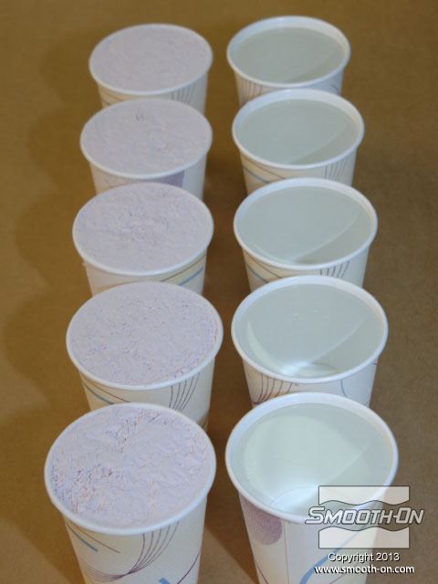 מדוד אבקת גבס ומים ביחס של 1(מים):2(גבס) לפי נפח.