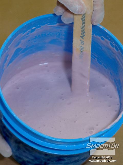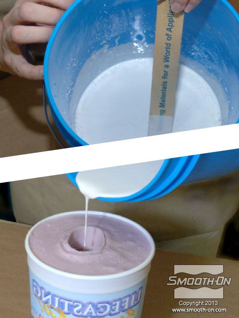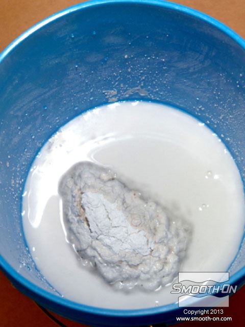 ערבב את הגבס עם המים עד לקבלת תערובת קרמית (בערך 4 דקות) ושפוך אל התבנית.