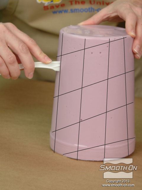 בעזרת סכין פלסטיק, צור חריצים במבנה רשת (grid) על התבנית.