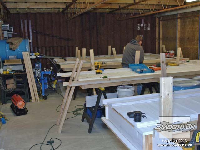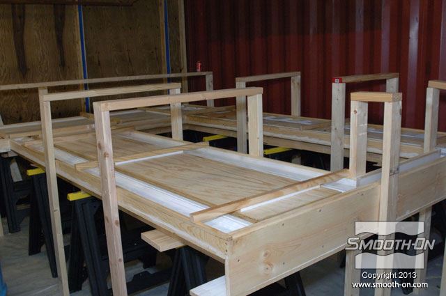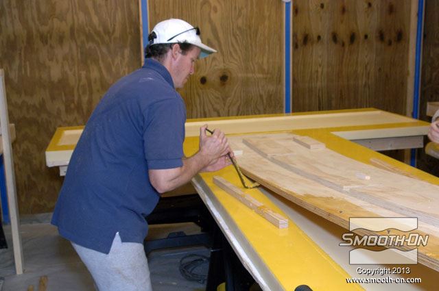 כדי לצמצמם את כמות הגומי שתדרש עבור התבנית, מכינים ספייסרים מדיקטים בעובי 2.5 ס"מ. מחברים את הספייסרים אל לוחות המסגרת כדי שלא יצופו על הגומי.