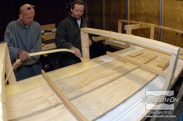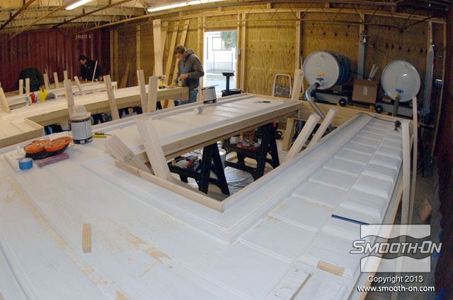 המודל המקורי, עליו יוצקים את הגומי פוליאורתן ניבנה משילוב של עץ ושרף פוליאסתר. בשלב זה יוצרים את כל פרטי העיצוב הקטנים, כדי שיעברו לתבנית וליציקות הבטון לאחר מכן. יוצרים מסגרת לתבנית בעזרת לוחות עץ ואוטמים את התפרים כדי למנוע דליפה של גומי.