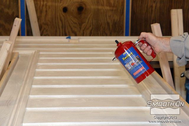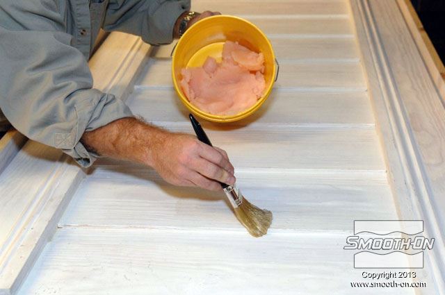בנוסף לחומר האטימה, משתמשים גם בחומר הפרדה כדי להקל על הסרת תבנית הגומי פוליאוריתן Vytaflex® 60 מכל משטחי המודל. מרססים את חומר ההפרדה Smooth-On’s Universal Mold Release בעזרת מרסס Kwikee®.