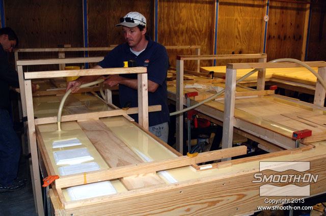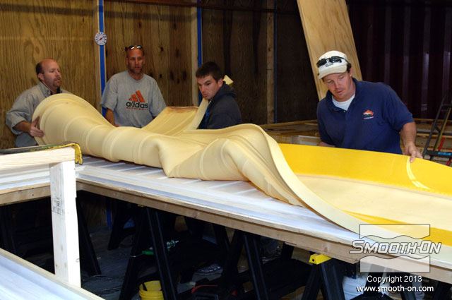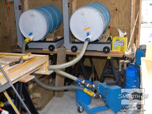 שטח העבודה היה מצומצם אך היה בו מספיק מקום למכונת ערבוב EZ Mix Meter Mix ומיכלים גדולים של שרף פוליאורתן VytaFlex 60.