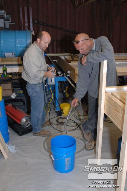 בגלל שנדרשת כמות גדולה מאוד של גומי עבור הכנת התבנית (680 ק"ג), מכונת הערבוב EZ Meter Mix תשמש גם לערבוב החומר וגם ליציקתו על המודל המקורי. מכונת הערבוב מערבבת את הVytaflex® 60 ביחס ערבוב 1A:1B לפי משקל. בסוף התהליך תתקבל תבנית פתוחה מגומי פוליאוריתן ללא בועות, שתהיה חזקה ועמידה ותוכל לשמש עבור יציקות רבות.