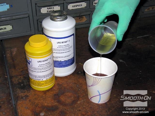 מערבבים את הבסיס והמקשה של דבק להדבקת פוליאוריטן -URE-BOND® II .