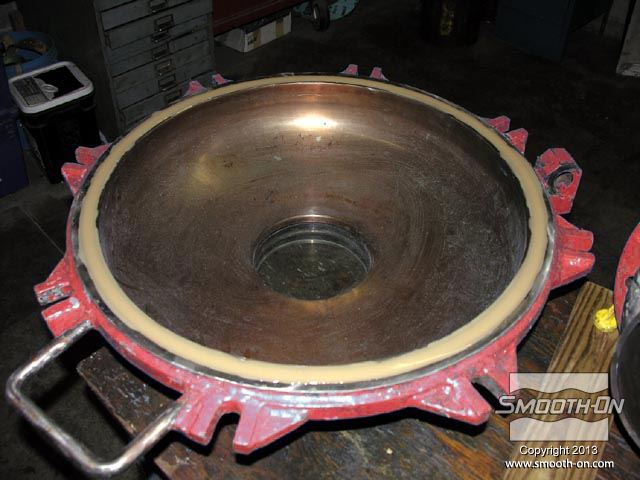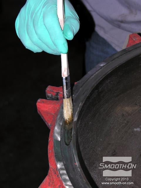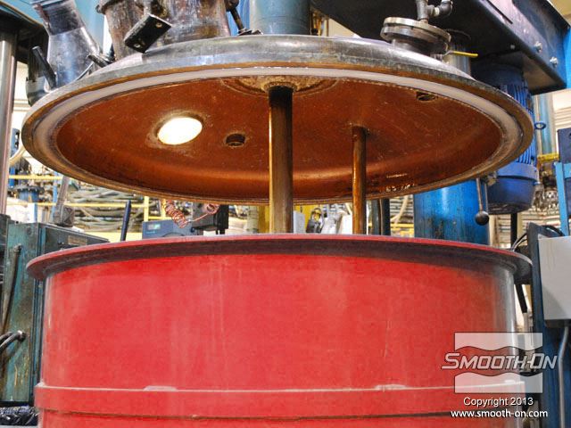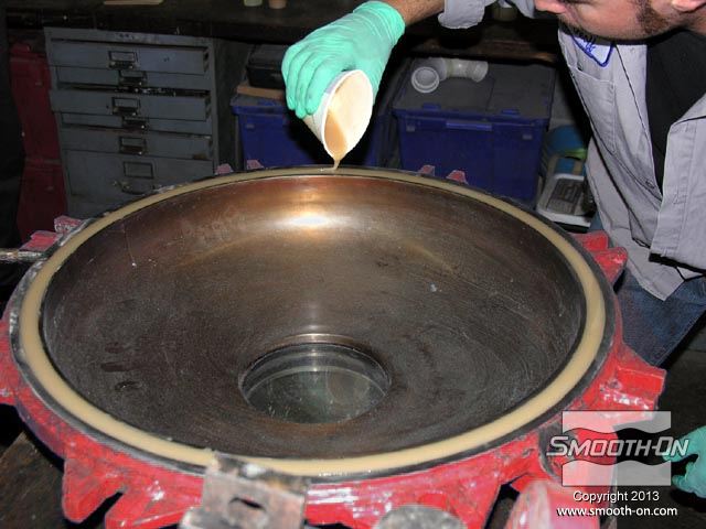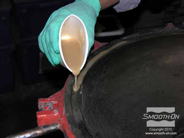 לאחר שפוליאוריטן ויטהפלקס 40 -VytaFlex® 40 מעורבב מספיק, שופכים את הנוזל אל תעלת המתכת.