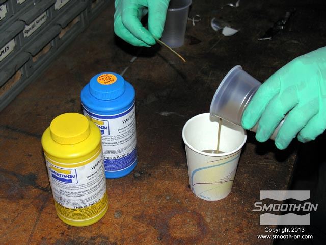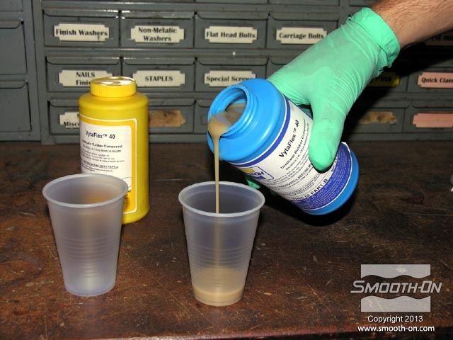 מערבבים את שני חלקי הפוליאוריתן VytaFlex® 40 במיכל הערבוב.