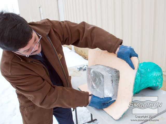 לאחר שהסיליקון Rebound® 25 התמצק לגמרי, מכינים מעיל תמיכה מפוליאוריתן למריחה Plasti-Patse. לאחר שמעיל התמיכה מתמצק, מוציאים את מודל החימר המקורי. לאחר מכן, מחזירים את תבנית הסיליקון אל מעיל התמיכה ונועלים את החצאים.
