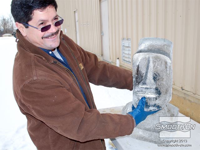 תהליך יצירת פסל הקרח של ארנסטו מתחיל בפיסול המודל המקורי מחימר.