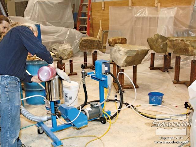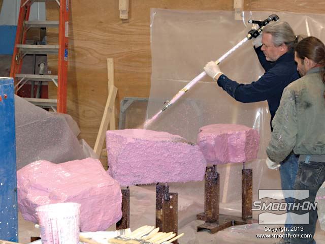 הסלעים הוגבהו והוכנו לתהליך הכנת תבנית עם סיליקון להתזה Mold Max® 30.