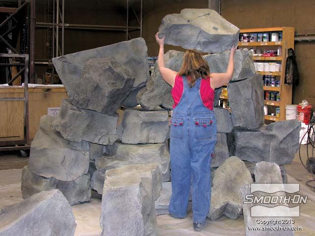 שופינג של סלעים.... ביל קלופינה בוחר את הסלעים שיהיו המודלים להעתקה. הסלעים הועברו מהמחצבה המקומית לרצפת הייצור של חברת Byond Design. חלק מהסלעים שקלו מעל ל-3 טון!