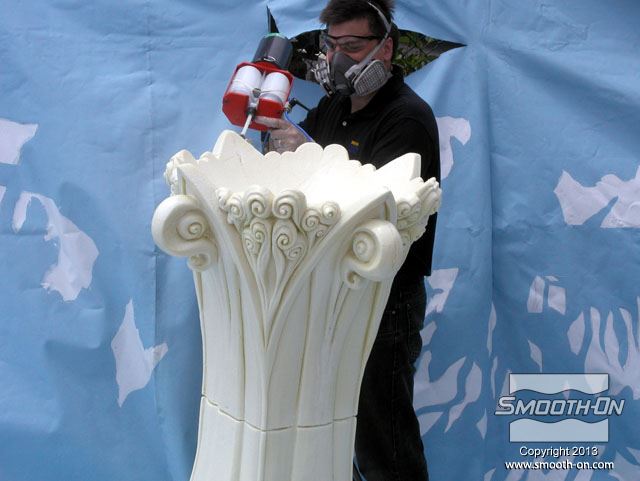 מרססים את ה פלסטיק להתזה Styrocoat® על המודל המקורי. המודל עשוי מקלקר מגולף כדי שיהיה קל במיוחד.