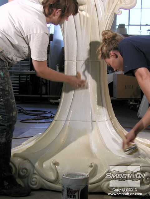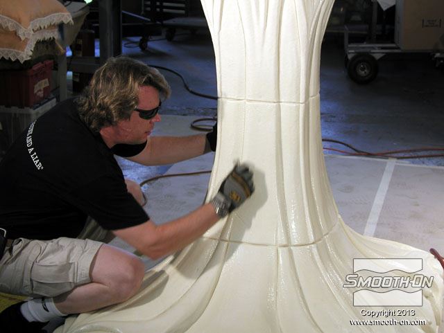 לאחר ש ציפוי הקלקר Styrocoat® מתמצק, משייפים את משטחי המודל ומחליקים אותם.
